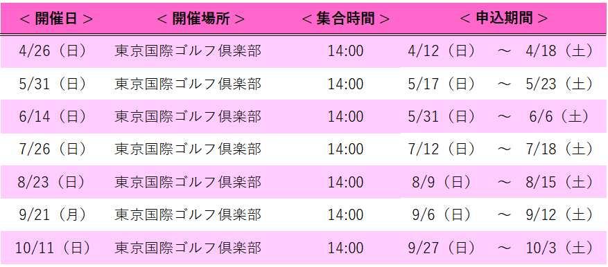 東京国際ゴルフ倶楽部様のご協力により、下記日程での開催となります。